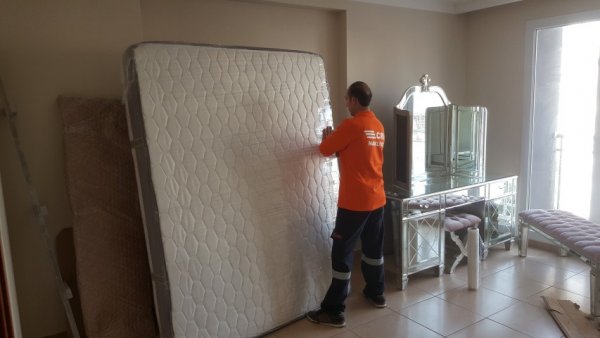 Yatak odasındaki paketleme işlemi önce mekan yatak ve bazalar streçlenip balonlu naylonlar ile paketlenir. Şifonyer, komidin ve tuvalet aynası kraft kağıtlıu balonlu naylonlar ile paketlenir. Gardrop ise önce içindeki takım elbiseler firmamızca özel tasarlanmış elbise dolaplarımıza yerleştirilir ve ütüsü bozulmadan dik bir şekilde taşınır. Dolap içi boşaldıktan sonra gardrop demonte edilip her bir parçası tek tek balonlu nayonlar ile sarılır. Boşaltma adresinde ise önce gardırop kurulur ve içine takım elbiseler yerleştirilir ve ardından baza yatak ve şifonyerlerin kurulumu yapılır.